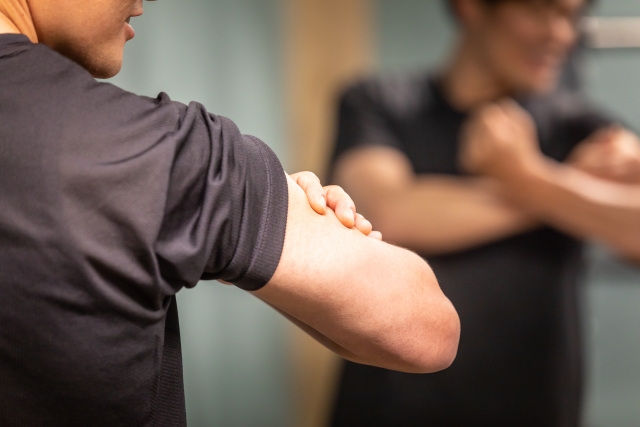 - この時、肩関節は動かさないようにし、上腕は固定しておきましょう