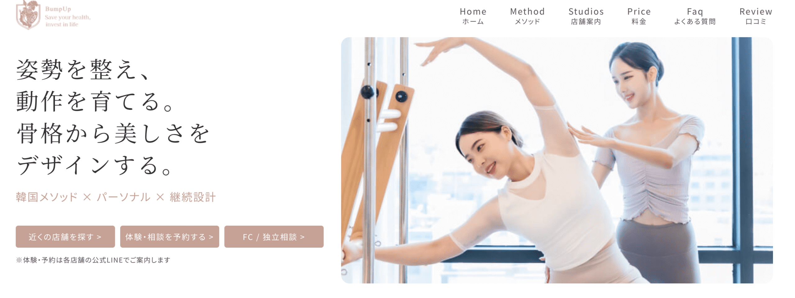 Bump Upは、他ではあまりない、骨格や姿勢などのカウンセリングをして、整体のようなストレッチをするパーソナルジムです。