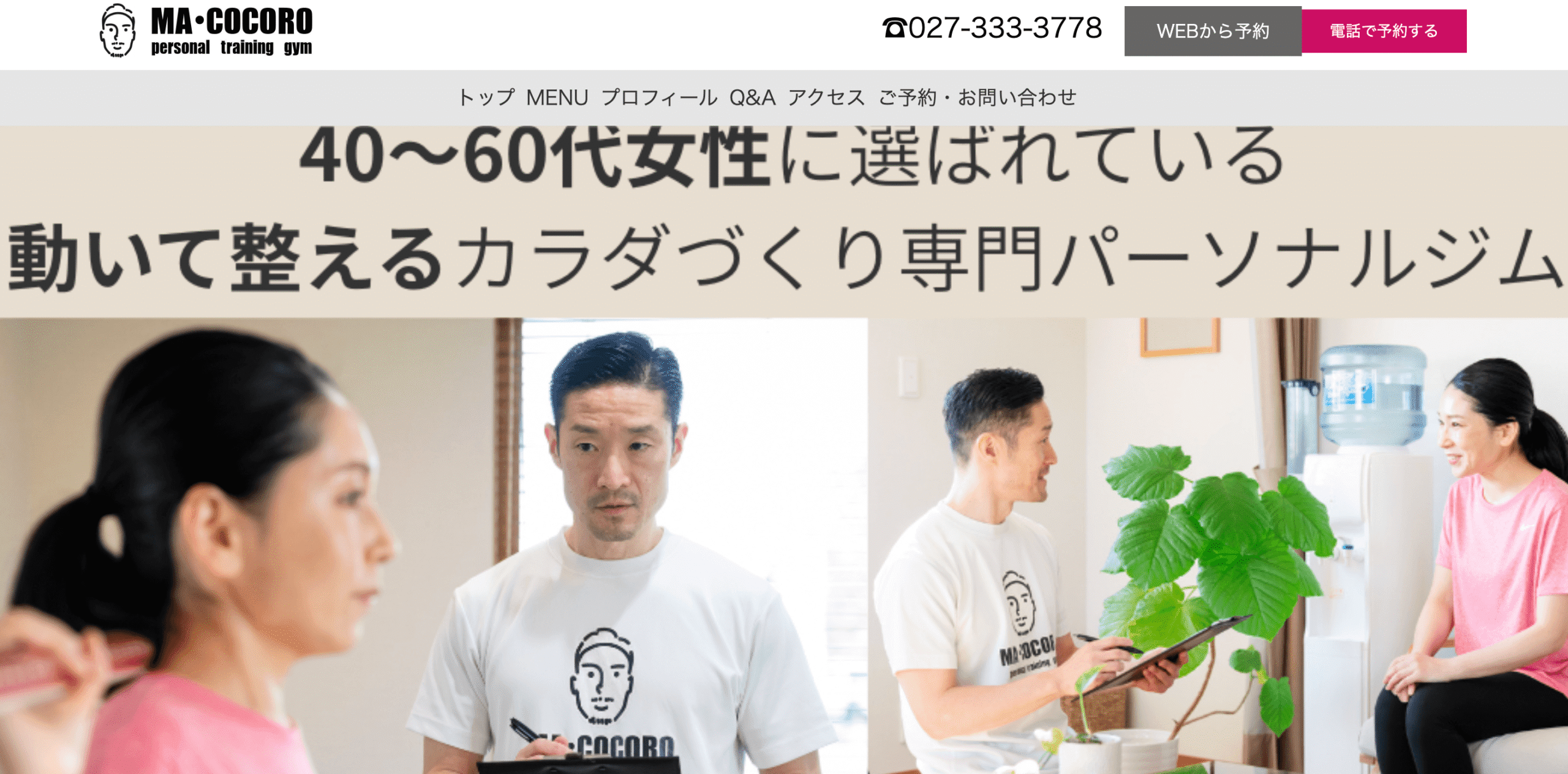 MA・COCOROは、40〜50代の女性にターゲットを絞った女性向けパーソナルジムです。